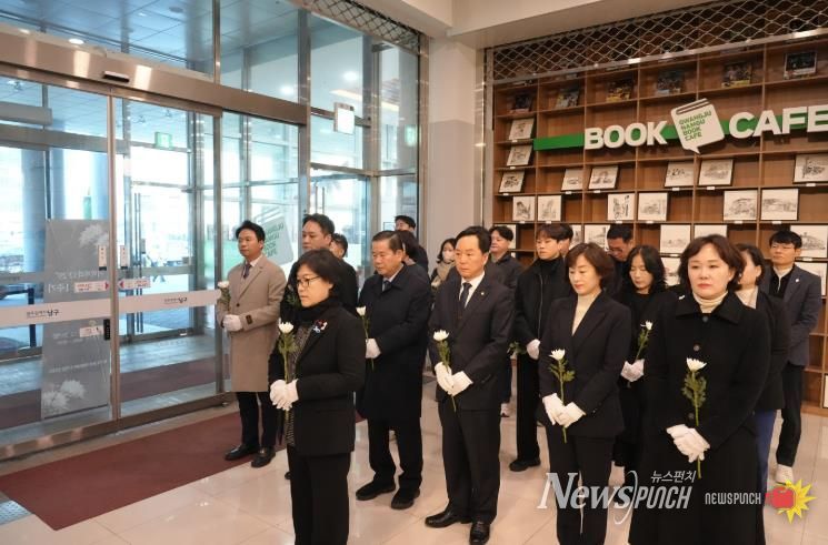 뉴스펀치 김길룡 기자 | 광주광역시 남구의회는 29일, 12․29 여객기참사 1주기를 맞아 남구청사 1층에서 추모식을 진행했다.