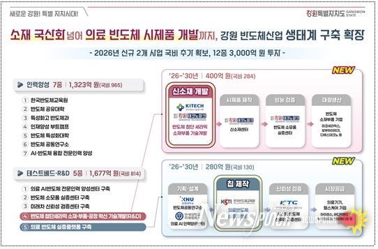 뉴스펀치 김길룡 기자 | 강원특별자치도가 12월 29일, 반도체산업 육성을 위한 신규 국비사업을 잇달아 확보하며, 총 3,000억 원 규모의 투자 라인업을 완성했다고 밝혔다.