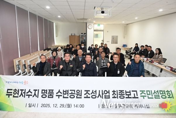 뉴스펀치 김길룡 기자 | 울주군 청량읍 문죽리 일원에 추진되는 두현저수지 명품수변공원 조성사업 실시설계용역 결과에 대한 주민설명회가 29일 울주군의회 의사당 1층 세미나실에서 열렸다.