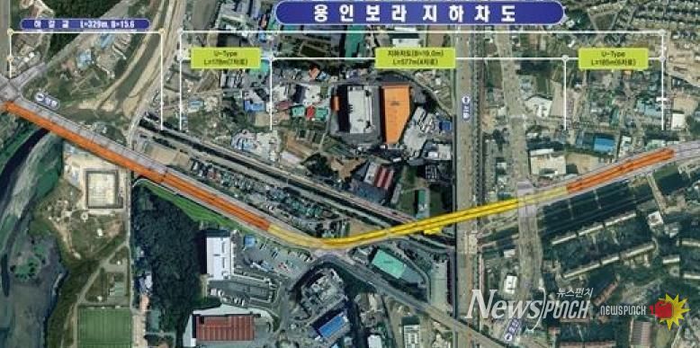 이 사업은 기흥구 보라택지개발지구 광역교통개선대책에 따라 교통혼잡 주요 지점인 하갈동과 보라동 일대의 총길이 1.65㎞ 구간 가운데 940m(양방향 4차로) 길이의 지하차도를 신설하는 공사다.