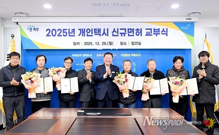 뉴스펀치 김길룡 기자 | 파주시는 지난 29일 '2025년도 개인택시 신규면허 교부식’을 개최했다고 밝혔다.