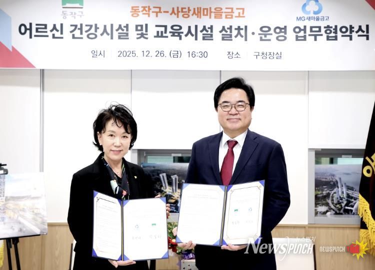 구는 지난 26일 구청장실에서 사당새마을금고(이사장 최영애)와 ‘어르신 건강시설 및 교육시설 설치·운영 업무협약’을 체결하고 이같이 밝혔다.