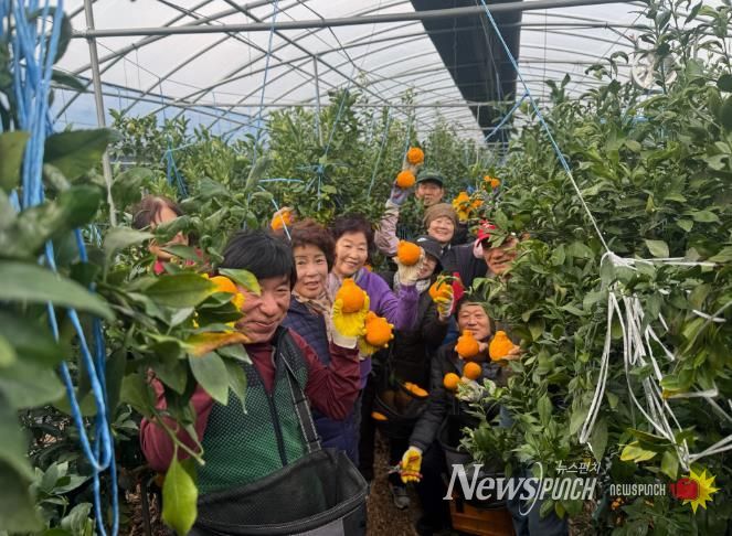 뉴스펀치 김길룡 기자 | 경북도민행복대학 고령군캠퍼스 2기 동창회는 12월 29일 고령군 덕곡면 예리에 위치한 ‘왕눈이농장’을 찾아 한라봉 재배 농가의 일손을 돕는 봉사활동을 실시했다.