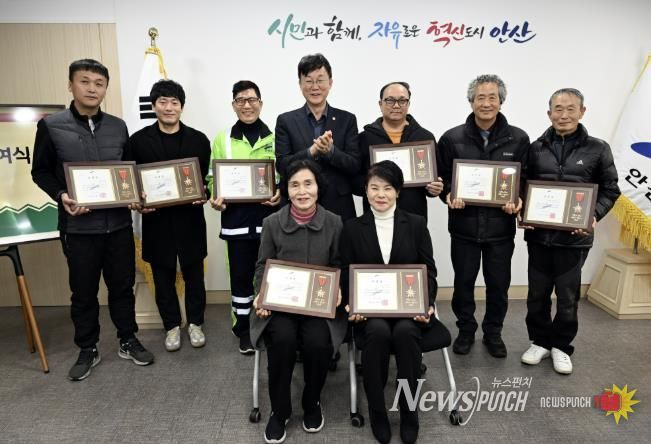 뉴스펀치 김길룡 기자 | 안산시는 지난 29일 시민의 안전과 쾌적한 도시환경 조성에 기여한 환경미화원 8명을 모범 시민으로 선정하고 표창장을 수여했다고 30일 밝혔다.