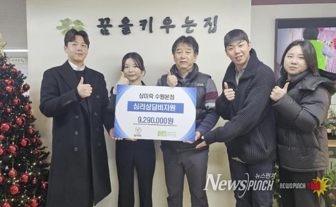 뉴스펀치 김길룡 기자 | 수원시 장안구 정자2동은 지난 29일 삼미락 수원본점으로부터 받은 후원금 929만원을 아동복지시설 ‘꿈을 키우는 집’에 전달했다고 밝혔다.