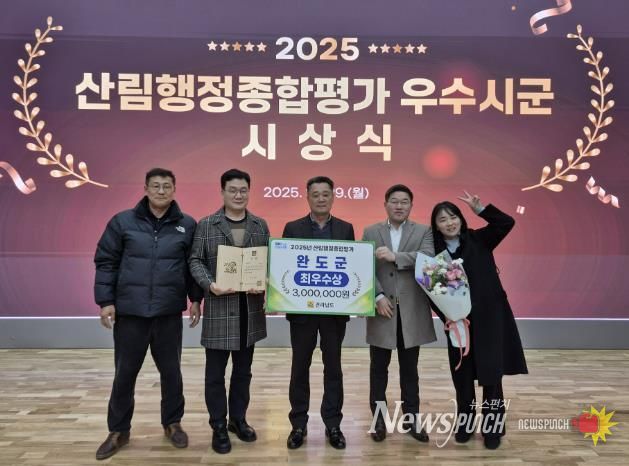 뉴스펀치 김길룡 기자 | 완도군이 전라남도 주관 ‘2025년 산림행정 종합 평가’에서 최우수상을 수상했다.