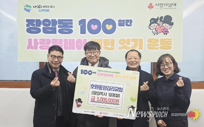 뉴스펀치 김길룡 기자 | 의정부시 장암동주민센터는 12월 29일 호원중앙감리교회가 지역 내 어려운 이웃을 돕기 위해 성금 500만 원을 기탁했다고 밝혔다.