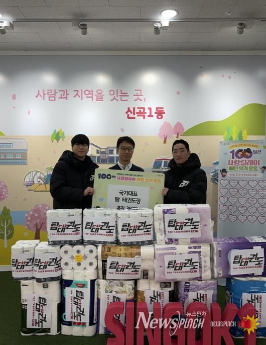 뉴스펀치 김길룡 기자 | 의정부시 신곡1동주민센터는 12월 26일 신곡동 국가대표 탑태권도이 휴지 369개를 기부했다고 밝혔다.