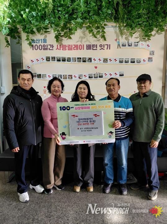 뉴스펀치 김길룡 기자 | 의정부시 송산1동주민센터는 12월 22일 용현동 소재 탑석자이그린스카우트 봉사단이 ‘100일간 사랑릴레이 배턴 잇기’에 동참해 취약계층을 위한 성금 20만 원을 후원했다고 밝혔다.