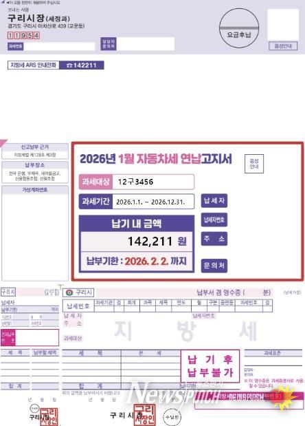 뉴스펀치 김길룡 기자 | 구리시는 고령 친화 정책의 하나로 시민들이 지방세 납세고지서를 보다 쉽고 편리하게 이해할 수 있도록 새해부터 ‘큰 글씨 고지서’를 도입·발송한다고 밝혔다.