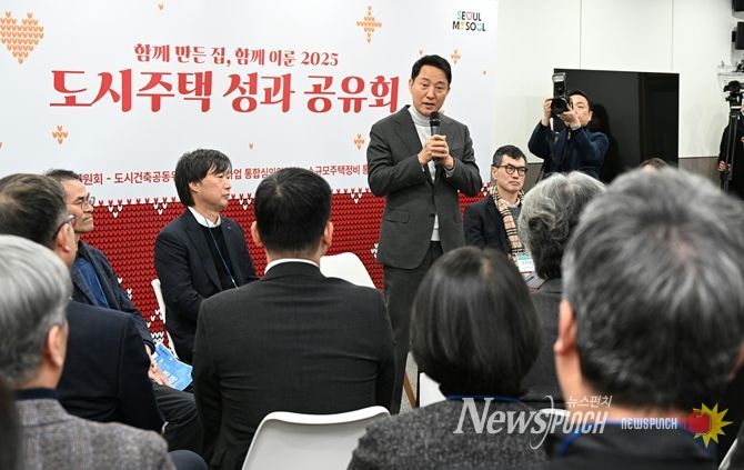 뉴스펀치 김완규 기자 | 오세훈 서울시장은 12월 30일 서울시청에서 도시계획·정비사업 관련 주요 위원회 위원들과 ‘2025 도시주택 성과 공유회(타운홀미팅)’를 열고, 신속하고 책임있는 위원회 심의를 통해 정체된 도시 정비사업을 활성화해 주택공급 속도를 높이겠다는 서울시의 의지를 밝혔다.