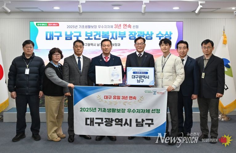 뉴스펀치 조평훈 기자 | 대구 남구는 ‘2025년 기초생활보장분야 우수지자체 평가’에서 보건복지부장관 표창을 수상했다고 밝혔다.