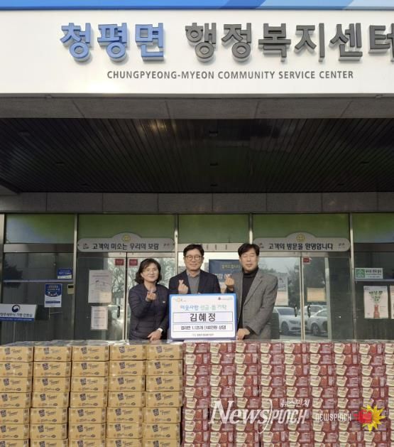 이에, 박성규 청평면장은 “어려운 시기에도 이웃을 먼저 생각하며 나눔을 실천해 주셔서 감사드린다”며 “기탁해 주신 물품은 도움이 필요한 이웃들에게 정성껏 전달해 따뜻한 마음이 잘 전해질 수 있도록 하겠다”고 전했다.