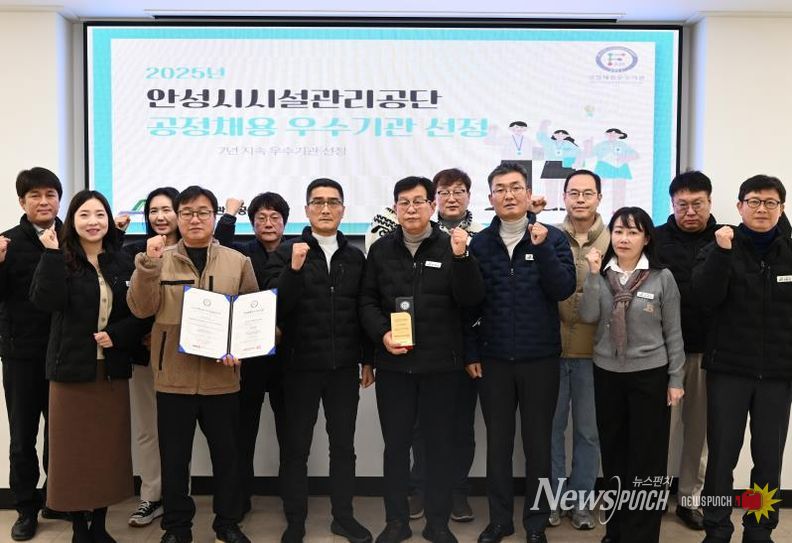 뉴스펀치 김길룡 기자 | 안성시시설관리공단은 한국경영인증원으로부터 ‘공정채용우수기관’ 인증을 획득하며, 7년 연속 재인증에 성공했다고 밝혔다. 이번 인증은 채용 과정 전반에서 편견적 요소를 배제하고 직무능력 중심의 공정한 채용체계를 안정적으로 운영해 온 성과를 대외적으로 인정받은 결과다.