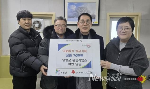 뉴스펀치 김길룡 기자 | 양평군 환경사업소는 지난 26일 옥천면에 관내 취약계층 지원을 위한 이웃돕기 성금 70만 원을 기탁했다.