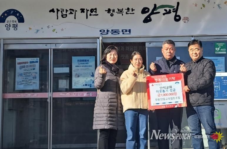 뉴스펀치 김길룡 기자 | 양평군 양동면은 추운 겨울을 맞아 지역사회의 이웃사랑 실천을 위해 양동면 내 여러 단체가 기부에 동참하고 있다고 밝혔다. 양평부추영농조합법인, 단석교회, 양평중기협회 등 지역 단체들은 어려운 이웃을 위해 사용해 달라며 기부금을 전달했다.