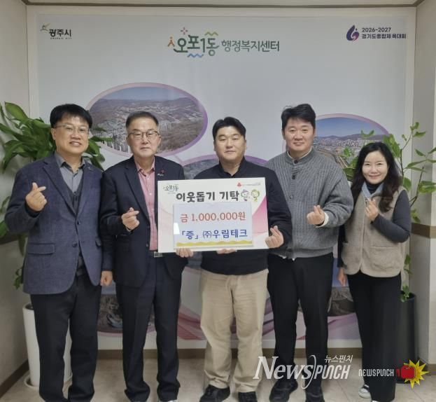 뉴스펀치 김길룡 기자 | ㈜우림테크 임택현 대표는 30일 지역 내 어려운 이웃을 위해 사용해 달라며 성금 100만 원을 광주시 오포1동 행정복지센터에 전달했다.