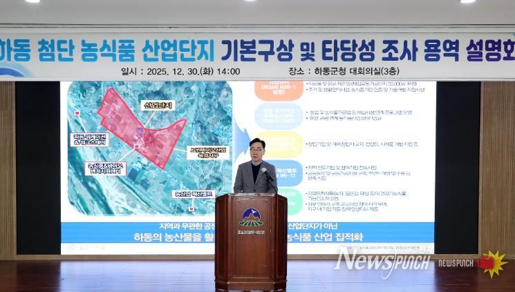 뉴스펀치 김길룡 기자 | 하동군은 지난 30일 군청 대회의실에서 기업인과 지역 주민 등 100여 명이 참석한 가운데, ‘첨단 농식품 산업단지 조성’을 위한 주민설명회를 개최했다고 밝혔다.