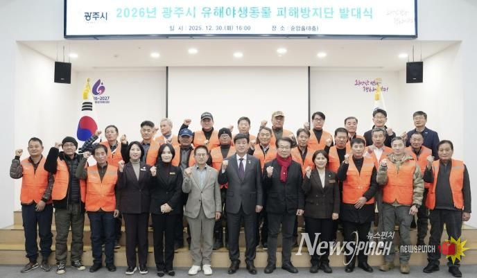 뉴스펀치 김길룡 기자 | 광주시는 지난 30일 시청 순암홀에서 ‘2026년도 광주시 유해야생동물 피해방지단’ 발대식을 개최했다.