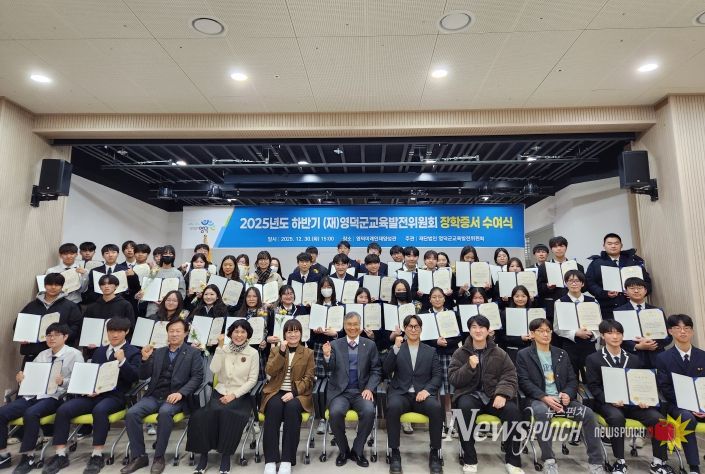 뉴스펀치 김길룡 기자 | 재단법인 영덕군교육발전위원회는 지난 30일 영덕미래인재양성관에서 2025년도 하반기 장학증서 수여식을 개최했다.