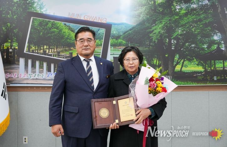 뉴스펀치 김길룡 기자 | 충북 괴산군의회 송영순 부의장이 31일 괴산군의회(의장 김낙영) 종무식에서 대한민국시군자치구의회의장협의회가 수여하는 대한민국지방의정봉사상을 수상했다.