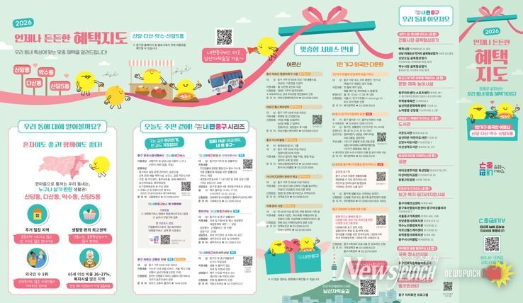 뉴스펀치 김완규 기자 | 서울 중구가 주민 생활에 필요한 정보를 지역별 특성에 맞춰 담은 ‘2026 언제나 든든한 혜택지도’ 리플릿을 새롭게 선보였다. 이번 리플릿은 기존 생애주기 중심으로 구성했던 ‘내편중구 리플릿’을 한 단계 발전시켜, 중구 15개 동의 지역 특성과 주민 구성에 맞춰 4종의 맞춤형 가이드로 세분화했다.