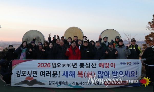 뉴스펀치 김길룡 기자 | 김포시와 김포시체육회·김포시장애인체육회가 지난 1일 하성면 봉성산에서 ‘2026 봉성산 해맞이 행사’를 개최하고, 시민들과 함께 병오년 붉은 말의 해의 시작을 알렸다. 이번 행사는 새해 첫 일출을 맞이하며 시민 화합과 지역 공동체의 안녕을 기원하기 위해 마련됐다.