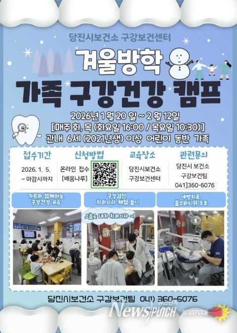 뉴스펀치 김길룡 기자 | 당진시보건소는 겨울방학을 맞이하여 온 가족이 함께 참여할 수 있는 가족 구강건강 캠프를 운영한다고 2일 밝혔다.