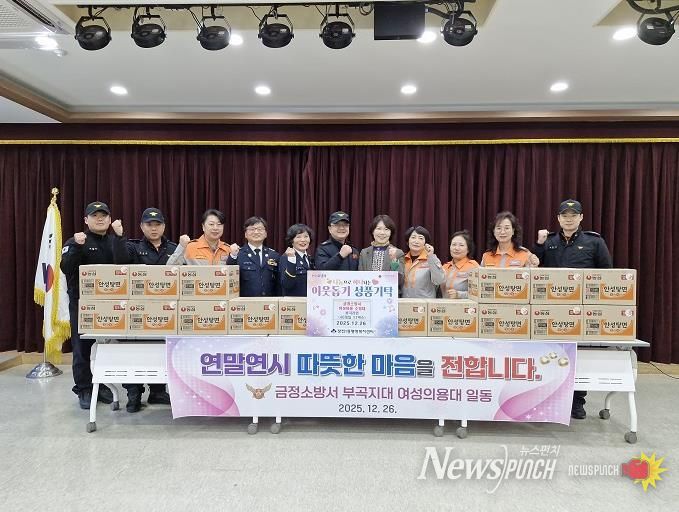 뉴스펀치 김길룡 기자 | 부산시 금정소방서 부곡지대 여성의용소방대은 지난 26일 장전1동·장전2동에 ‘사랑의 손길’라면 34박스를 기탁했다고 밝혔다.