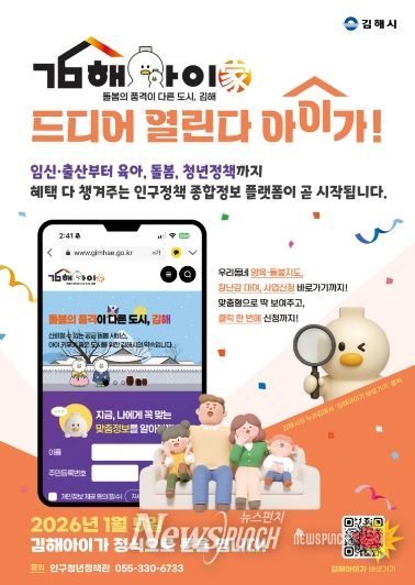 뉴스펀치 김길룡 기자 | 김해시는 시민 누구나 임신부터 출산, 육아, 돌봄, 청소년, 청년 지원정책까지 한눈에 확인하고 신청할 수 있는 인구정책 종합정보 플랫폼‘김해아이가(家)’를 오는 5일 정식 오픈한다고 2일 밝혔다.