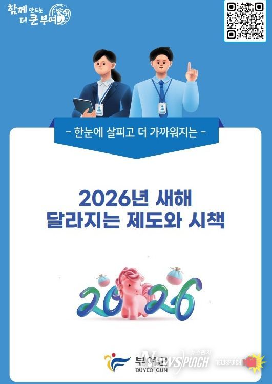 뉴스펀치 김길룡 기자 | 부여군은 ‘2026년 달라지는 제도·시책’을 군 누리집에 게시했다고 2일 밝혔다.