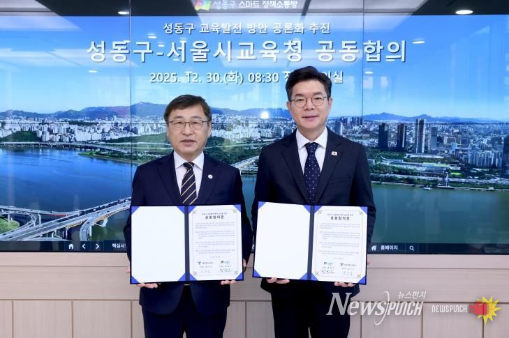 뉴스펀치 김완규 기자 | 서울 성동구가 서울특별시교육청과 함께 적정규모 학교 육성 등 성동구 교육 발전방안 공론화 추진을 위해 힘을 모은다고 밝혔다.
