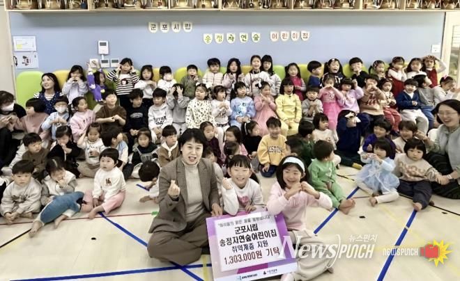 뉴스펀치 김길룡 기자 | 군포시 송부동에 위치한 군포시립송정자연숲어린이집에서는 연말을 맞이하여 어려운 이웃에게 1,303,000원을 기탁했다.