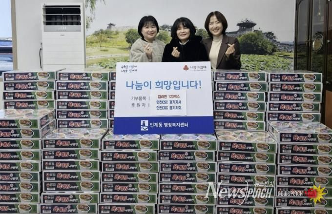 박선옥 인계동장은 “소외된 이웃을 위해 지속적으로 나눔활동을 해주시는 한전CSC(주) 경기지사 관계자분들께 감사드리며, 어려운 분들이 따뜻한 연말이 될 수 있도록 후원품을 잘 전달하겠다”라고 말했다.