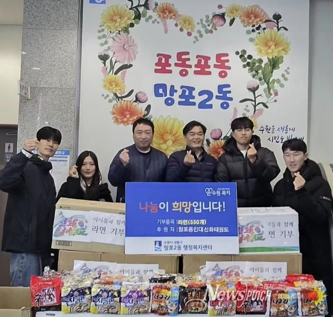 이번에 전달된 라면은 망포용인대신화태권도에 다니는 아이들이 자발적으로 모은 기부 물품으로, 연말을 맞아 이웃과 따뜻한 나눔을 나누기 위해 마련됐다.