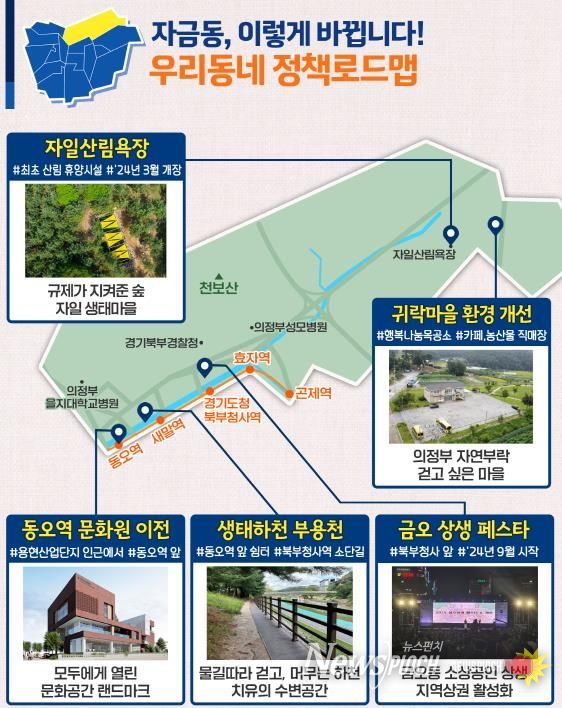 뉴스펀치 김길룡 기자 | 의정부시는 시민 생활과 밀접한 행정‧인프라‧복지‧문화 등에 대한 정보를 지역 단위로 정리한 ‘우리동네 정책로드맵’ 자금동편을 2일 발표했다.