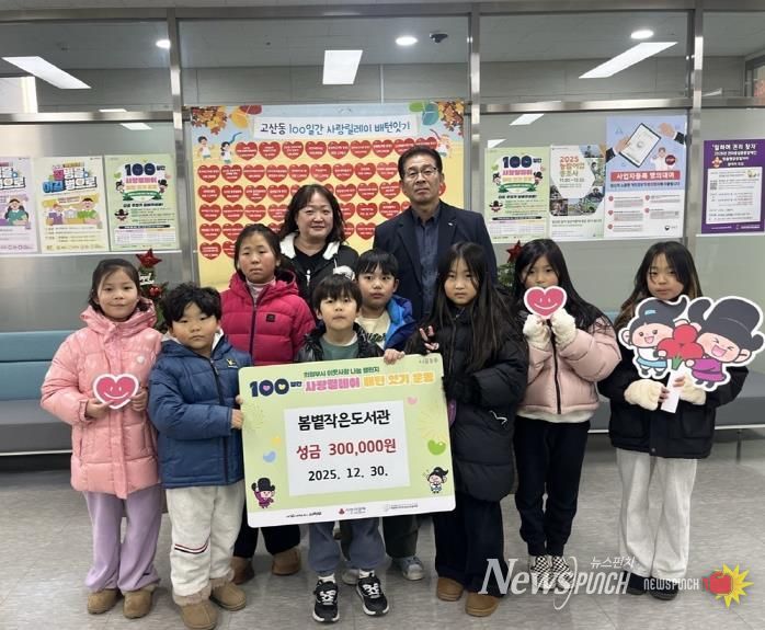 뉴스펀치 김길룡 기자 | 의정부시 고산동주민센터는 12월 30일 고산동 쌍용더플래티넘 아파트 내 위치한 봄볕작은도서관이 성금 30만 원을 기부하며 ‘100일간 사랑릴레이 배턴 잇기’에 동참했다고 밝혔다.