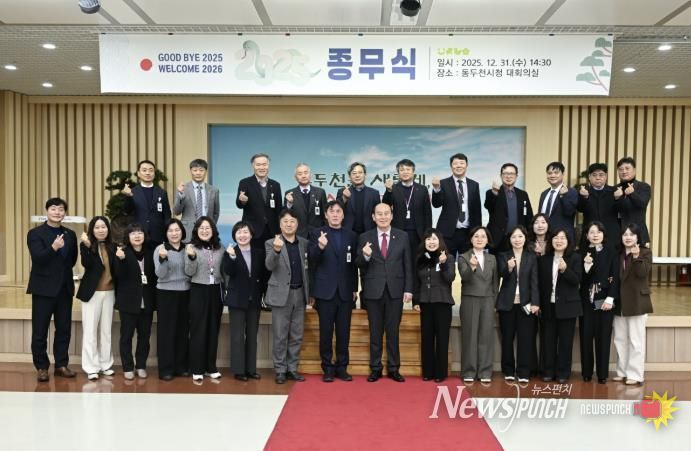 뉴스펀치 김길룡 기자 | 동두천시는 지난 12월 31일 시청 대회의실에서 ‘2025년 종무식’을 개최했다. 이날 행사에는 표창 수상자와 공무원 등 200여 명이 참석했다.