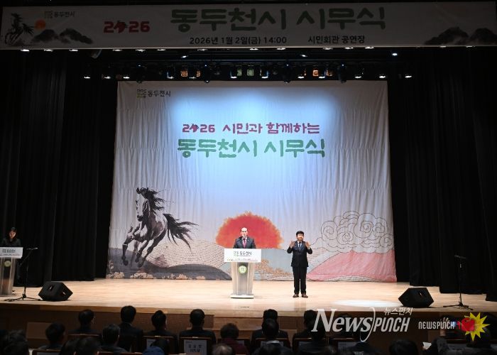 뉴스펀치 박상훈 기자 | 동두천시는 2026년 병오년(丙午年) 새해를 맞아 1월 2일 오후 2시 시민회관 공연장에서 시민과 함께하는 ‘2026년 시무식’을 개최했다.