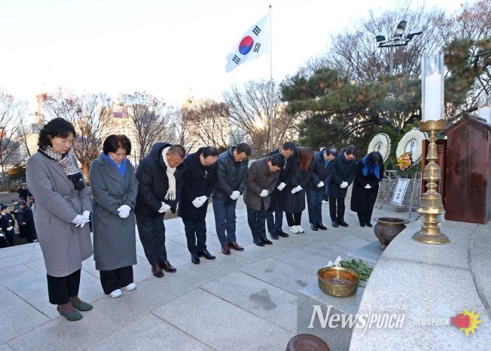 뉴스펀치 박상훈 기자 | 광명시의회는 2일 현충탑을 참배하며 2026년 병오년(丙午年) 새해 첫 의정활동을 시작했다.