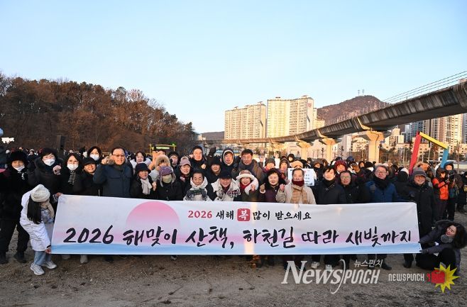 뉴스펀치 박상훈 기자 | 의정부시의회는 지난 1일 병오년 새해를 맞아 지역 주민들과 함께 걸으며 희망찬 2026년을 시작할 수 있도록 ‘해맞이 산책, 하천길 따라 새빛정원까지’ 신년 해맞이 행사에 참석했다.
