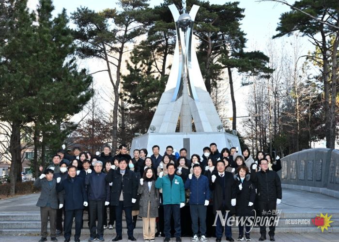 뉴스펀치 김윤걸 기자 | 부산 기장군은 2일 기장항일운동 기념탑에서 순국선열들의 넋을 기리는 참배를 하며, 2026년도 첫 군정을 시작했다고 밝혔다.