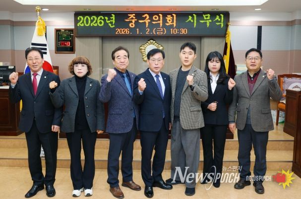 이날 시무식에는 이종호 의장을 비롯한 중구의회 의원과 의회사무과 직원들이 참석했으며, 국민의례, 이종호 의장의 신년사 낭독, 의원과 직원 간 신년인사의 순서로 진행됐다.