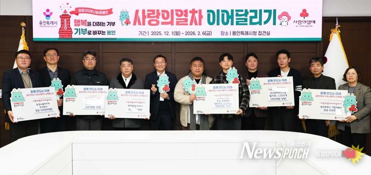 뉴스펀치 박상훈 기자 | 2026년 붉은 말의 해, 용인특례시 사랑의 열차 이어달리기에 지역사회 따뜻한 나눔의 손길이 이어지고 있다. ‘사랑의 열차 이어달리기’는 용인의 대표 연말연시 이웃돕기 운동이다. 시는 지난해 12월 3일 시청 컨벤션홀에서 ‘희망 2026나눔캠페인 사랑의 온도탑제막식 및 사랑의 열차 이어달리기 발대식’을 열었다. ‘사랑의 열차 이어달리기’는 2월 6일까지 총 68일 동안 이웃돕기 성금 14억 원 모금을 목표로 이뤄진다.