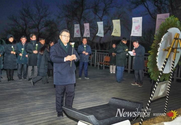뉴스펀치 박상훈 기자 | 중랑구 류경기 중랑구청장이 1월 2일 오전, 병오년 새해 첫 공식 일정으로 망우역사문화공원을 찾아 애국지사 묘역을 참배했다.