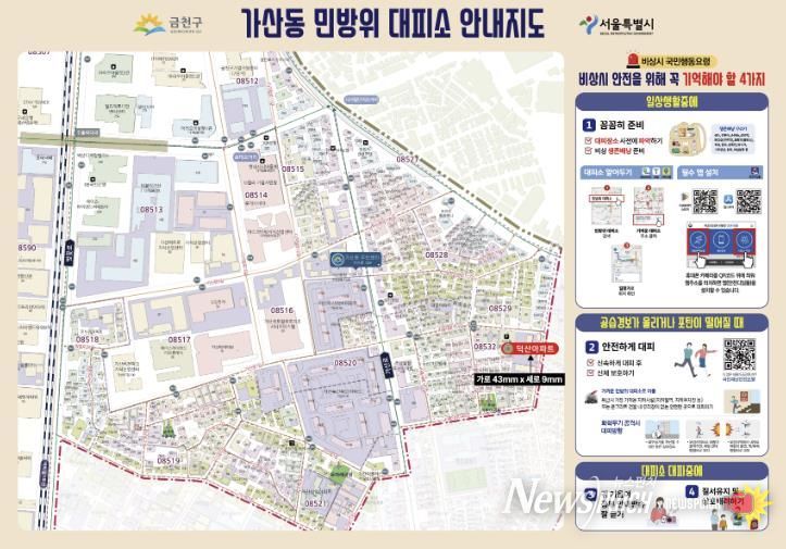 유성훈 금천구청장은 “이번 민방위 대피시설 안내지도는 대피 정보와 행동요령을 함께 제공하는 실질적인 안전 안내 자료”라며, “앞으로도 구민의 생명과 안전을 최우선으로 하는 재난 대응 체계를 지속적으로 강화해 나가겠다”라고 밝혔다.