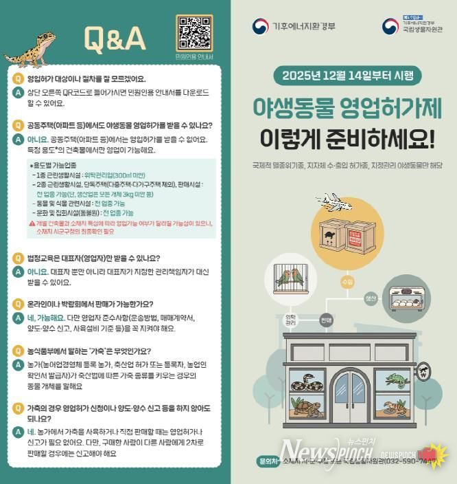 ‘야생생물 보호 및 관리에 관한 법률’ 개정에 따른 이번 시행은 야생동물의 무분별한 유통으로 인한 인수공통감염병 발생을 예방하고 사육 과정에서 유기되는 외래 야생동물로 인한 생태계 교란을 사전에 방지하기 위해 마련됐다.