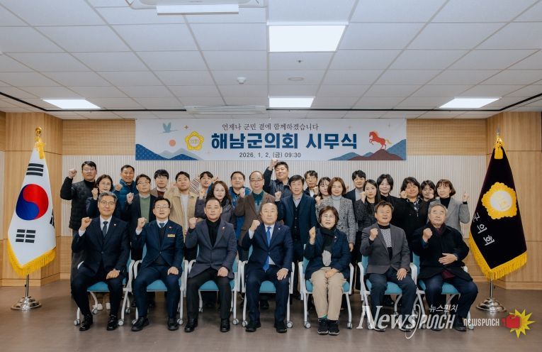 뉴스펀치 최영남 기자 | 해남군의회는 2일 주민소통실에서 군의원들과 의회사무과 직원들이 참석한 가운데 2026년 병오년(丙午年) 시무식을 열고 본격적인 의정활동을 시작했다.