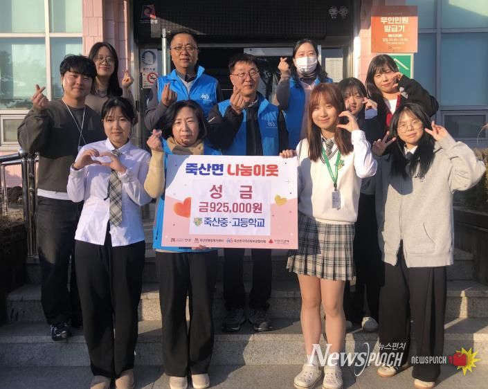 뉴스펀치 박상훈 기자 | 죽산중·고등학교는 지난 2일 2025학년도 동아리박람회 수익금 전액인 925,000원을 죽산면 저소득층을 위해 죽산면지역사회보장협의체에 기탁했다.