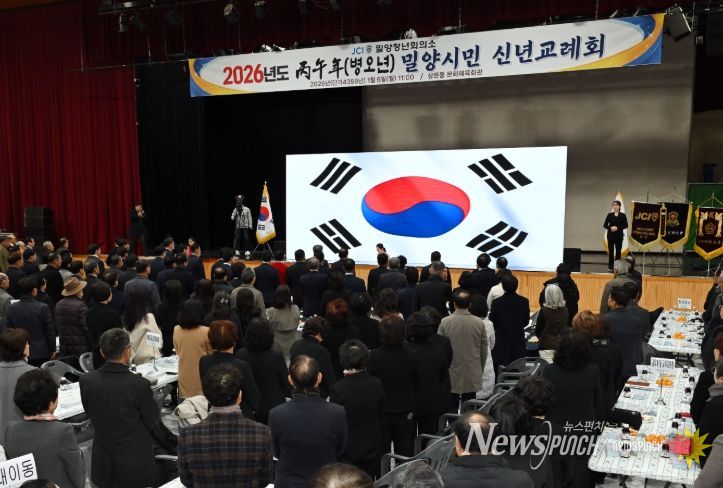 뉴스펀치 박세훈 기자 | 밀양청년회의소(회장 김명증)는 5일 붉은 말의 해를 맞아 밀양시 삼문동 문화체육회관에서‘2026 병오년 신년교례회'를 개최했다.